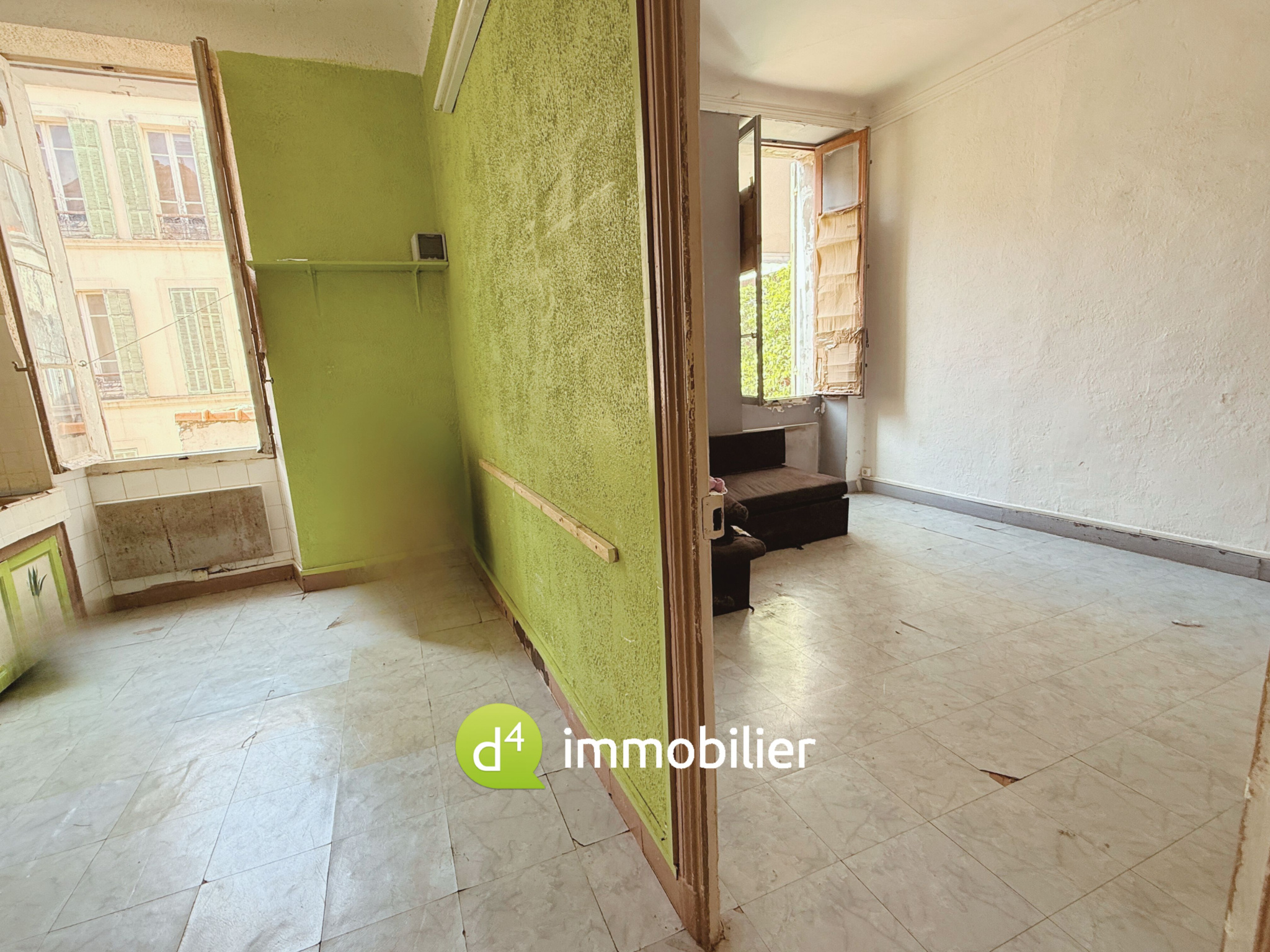 Appartement de 36m² situé dans un immeuble typiquement marseillais, au 1er étage, dans le quartier animé du Cours Julien. Idéal pour un projet de rénovation !