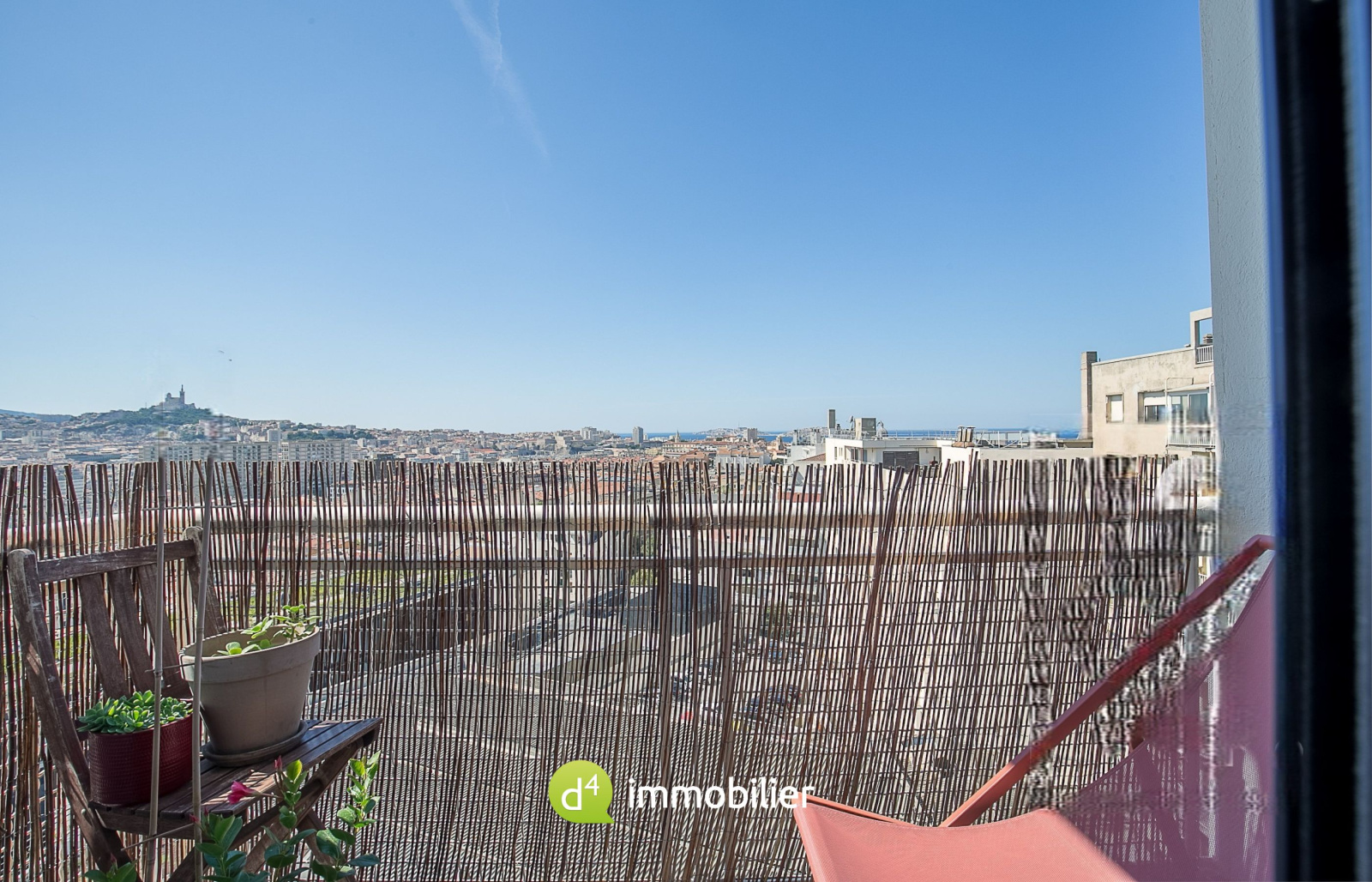 Le calme absolu côté cour crée une atmosphère de sérénité rare en plein cœur de la ville. Les pièces de vie donnant sur l'arrière de l'appartement sont le point fort de cet espace. Avec les fenêtres ouvertes sur les balcons, vous serez baigné de lumière naturelle et profiterez d'une vue à couper le souffle. D'un côté, la mer s'étend à perte de vue, avec une vue imprenable sur le Frioul. De l'autre, Notre-Dame de la Garde se dresse majestueusement à votre gauche, créant une ambiance qui caractérise Marseille.