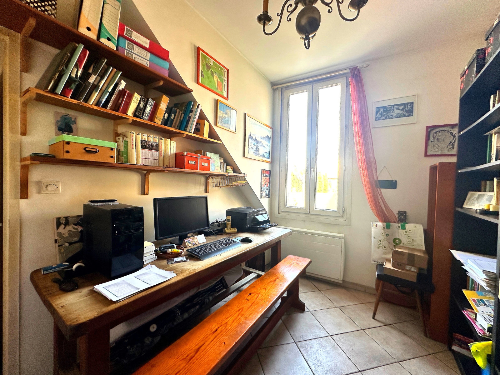 Les combles spacieux offrent un potentiel d'aménagement supplémentaire, tandis qu'un bureau de près de 9m² au rez-de-chaussée pourrait facilement se transformer en une chambre supplémentaire, adaptant ainsi l'espace à vos besoins.